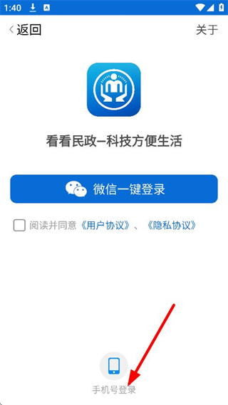 3、在登录选择页面,点击手机号登录,进入手机号快捷登录页面。