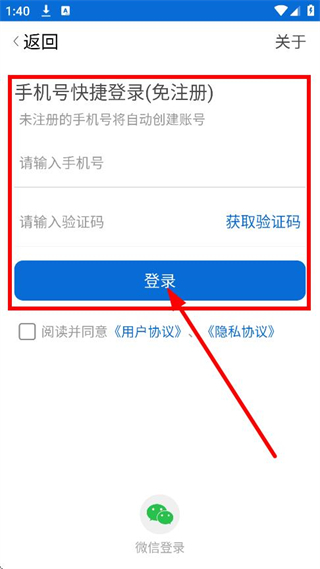 4、在输入手机号、验证码并勾选同意后点击登录,完成账号登录操作。