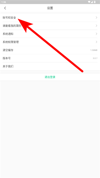3、在设置界面中,点击账号和安全选项,进入账号安全页面。