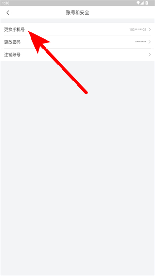 4、在账号安全页面,点击更换手机号选项,进入更换手机号界面。