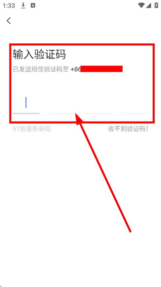 3、最后可以在验证码输入页面,输入短信验证码,完成账号登录操作。