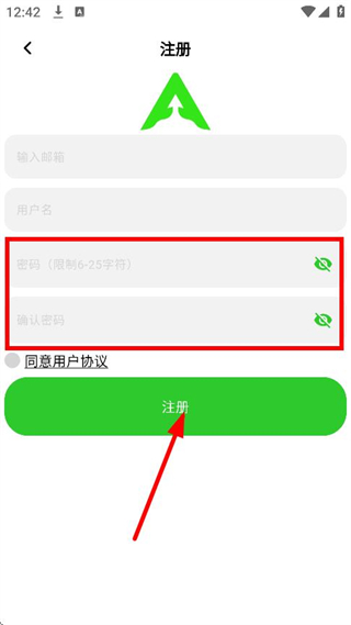 5、最后设置密码、确认密码,点击注册,完成账号注册操作。