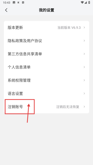 3、在设置页面,点击注销账号选项,进入申请注销账号页面。