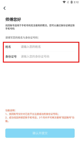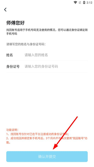 3、填写完成后,点击确认并提交,按照提示完成账号找回操作。
