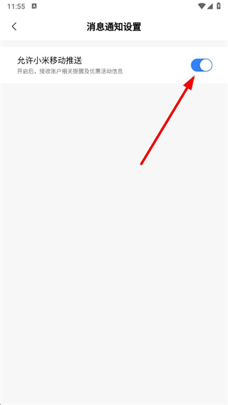 4、在消息通知设置页面,点击右侧的开关按钮将其关闭,即可关闭消息推送。