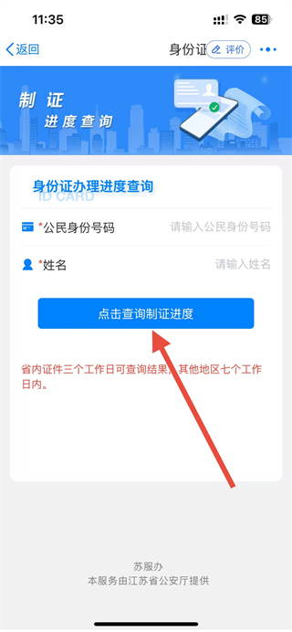 4、在页面,输入信息后,点击查询制证进度,即可查询身份证办理进度。