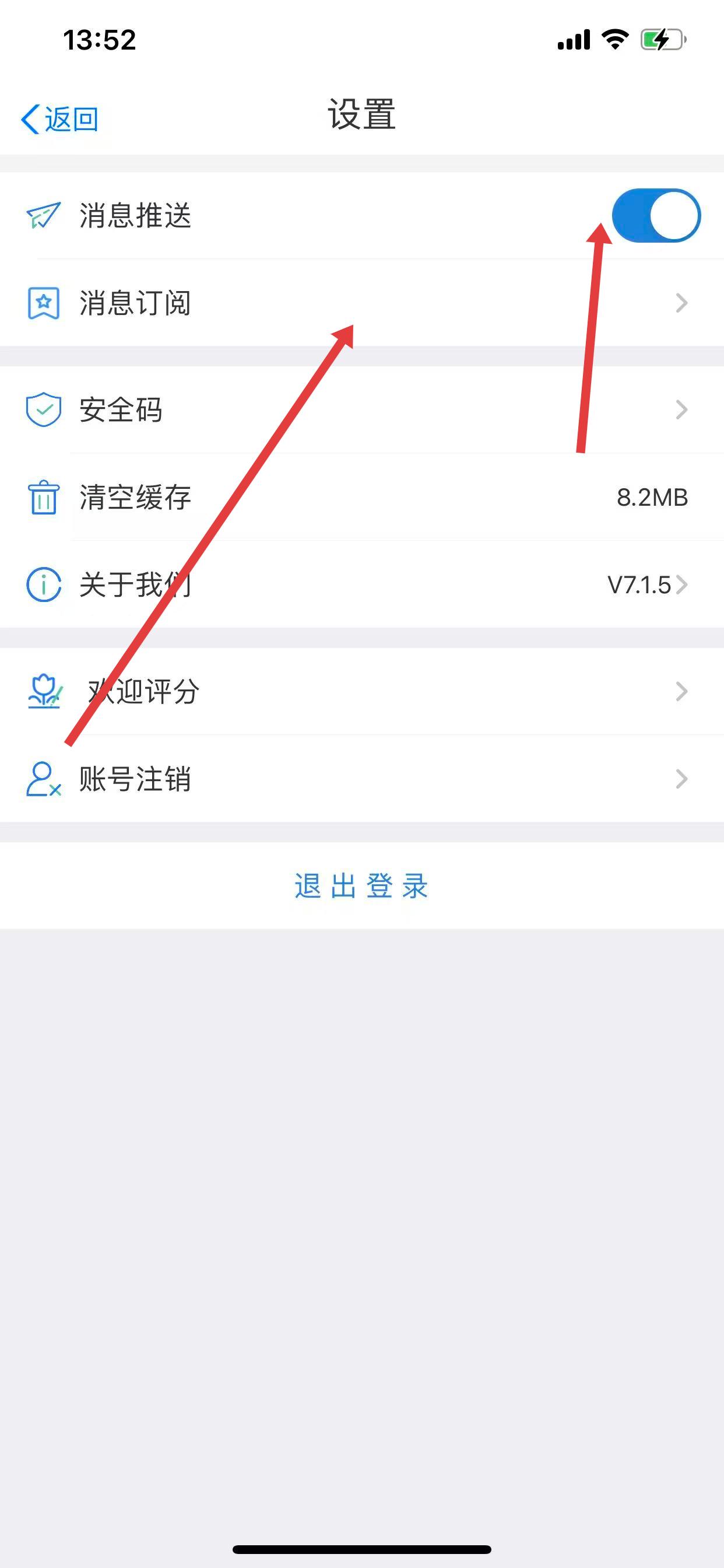 3、进入设置页面后,确保消息推送开关处于开启状态,点击消息订阅选项。