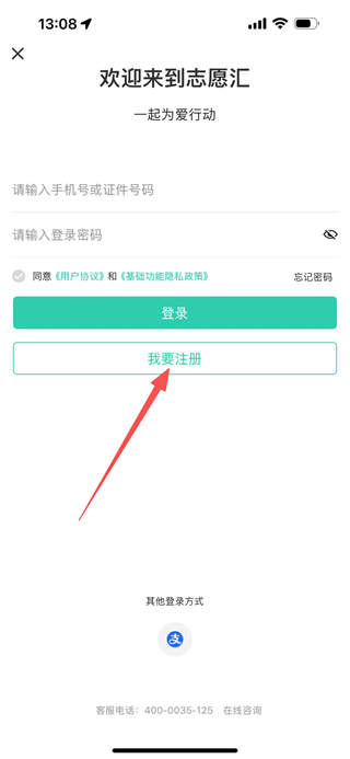 3、在登录注册页面,点击我要注册,进入注册成为志愿者页面。