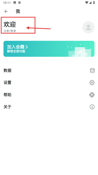 2、在个人中心,点击注册/登录选项,进入登录注册方式选择页面。