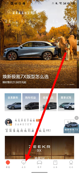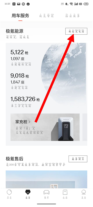 1、打开极氪汽车,点击底部服务,进入服务页面。