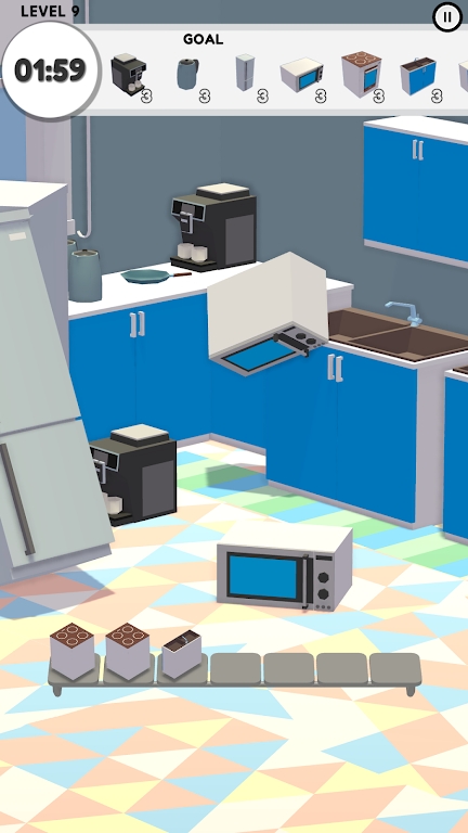 游戏操作简单直观,新手玩家也能快速上手,不需要复杂的游戏经验。游戏提供了数十种风格各异的场景主题,从温馨家居到奇幻世界应有尽有,每个场景都配有独特的视觉效果和背景音乐。关卡设计极具创意,每次游戏都会带来不同的物品组合和排列方式,确保游戏体验永不重复。游戏还准备了上百种不同形状和颜色的物品,让匹配过程充满视觉享受。