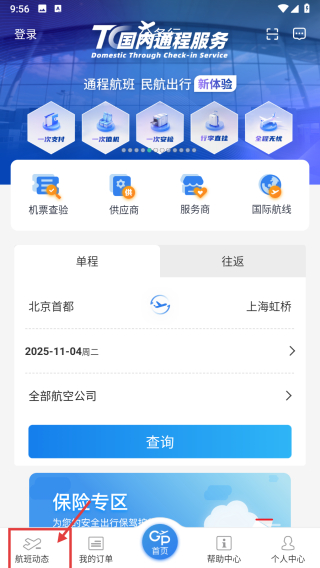 1、打开民航服务类APP,点击底部航班动态选项,进入航班动态查询页面。