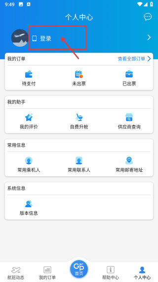 2、在个人中心,点击登录选项,进入用户登录页面。