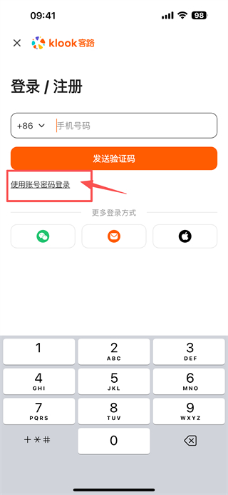 3、在登录方式选择页面,点击使用账号密码登录选项,进入账号密码登录信息填写页面。
