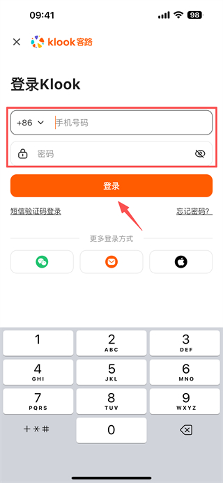 4、在账号密码登录页面,填写手机号码及密码,点击登录按钮,完成账号登录操作。