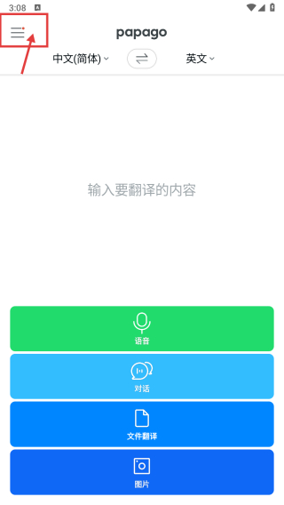 1、打开翻译类APP首页,点击左上角菜单图标,展开功能菜单。