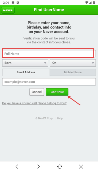 4、在Find-UserName页面,输入全名,选择生日信息点击Continue按钮,即可发起密码查询操作。