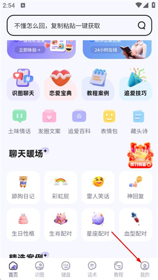 聊天高手是一款专注提升用户沟通质量的实用工具,覆盖日常闲谈、深情告白、误会化解等多元沟通场景,通过提供精准匹配的回复建议,助力用户增进情感联系,远离沟通误解与隔阂,成为贴心的沟通助手,不仅能帮助用户轻松摆脱沟通冷场、表达生硬的困扰,更能助力精准传递心意、巧妙化解矛盾,有效增进与他人的情感联结。