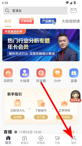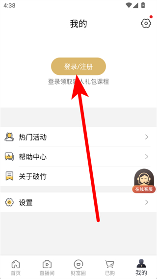 1、打开破竹知识平台,点击底部导航栏我的,进入个人中心。
