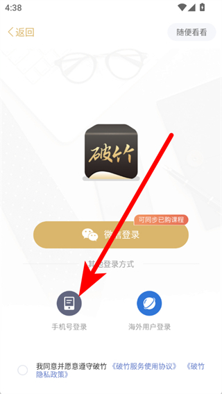3、在登录选择页面,点击手机号登录,进入手机号登录页面。