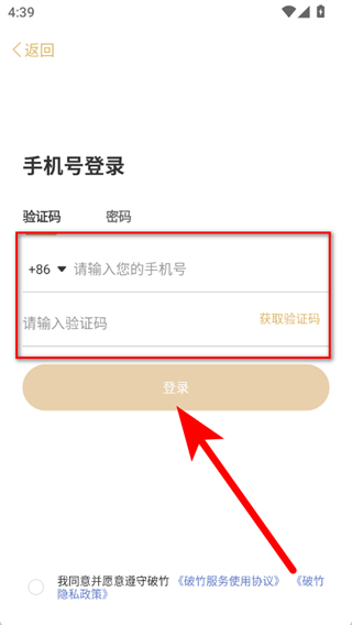 4、输入手机号,点击获取验证码,输入验证码后,点击登录按钮,完成账号登录。