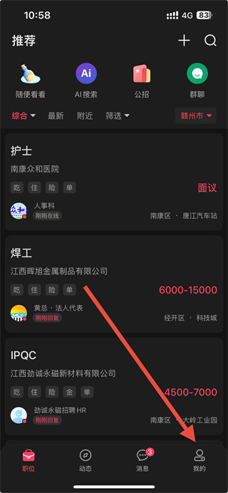 1、打开九一人才网APP,点击右下角我的进入个人页面。