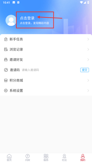 1、打开本地资讯类APP首页,点击底部我的选项,进入个人中心页面。