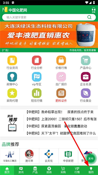 1、打开中国化肥网APP,点击右下角我的进入用户中心页面。