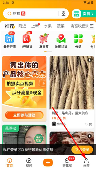 微信上有个朋友圈,一亩田APP有个生意圈。作用就是让你的生意圈客户都知道你的动态,反过来,你也看到了客户的动态,点击右下角“发动态”按钮开始发布生意动态了啦!