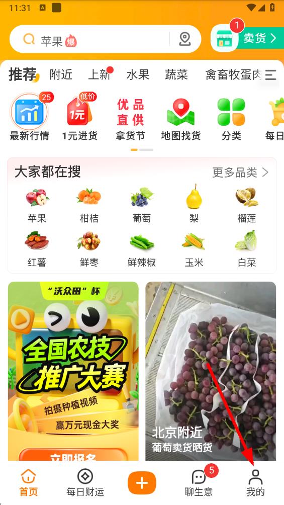 1、打开一亩田APP,点击右下角我的进入个人页面。