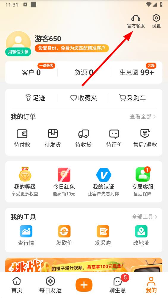 2、在个人界面右上角,点击官方客服选项,进入官方客服页面。
