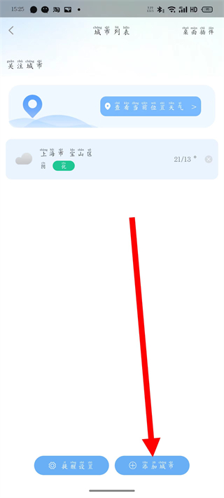 3、在城市列表页面,点击添加城市,进入添加城市页面。