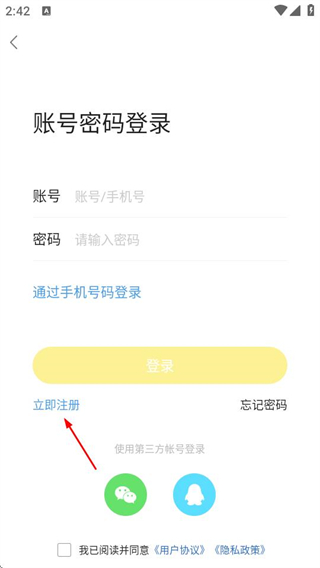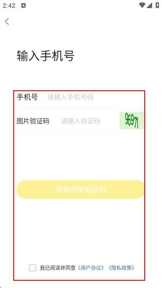 4、在注册页面,输入信息,勾选协议后点击获取验证码,完成注册。