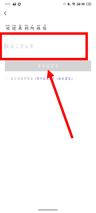 3、在登录页面,输入手机号,勾选同意后,点击获取验证码。