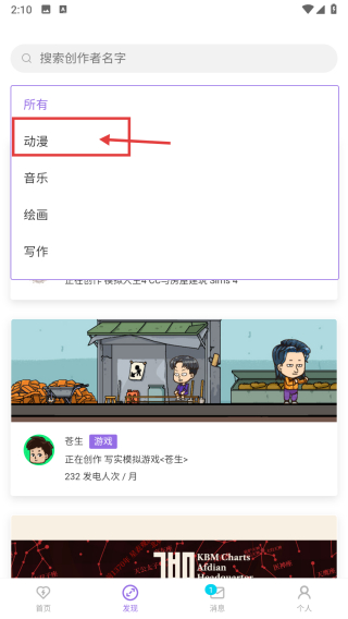 3、在分类列表中,选择动漫分类,筛选出动漫类创作内容。