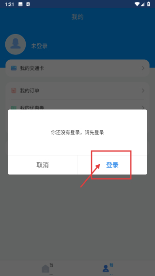 3、在提示弹窗中,点击登录选项,进入账号登录界面。