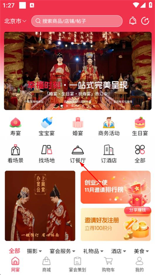 1、在网宴首页,点击订餐厅选项,进入订餐厅页面。