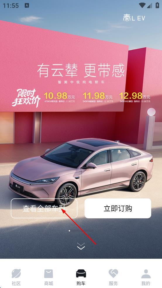 3、进入展示车辆的页面后,点击查看全部车型按钮。