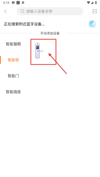 2、在设备添加界面,点击智能锁分类标签,筛选出智能锁设备列表。