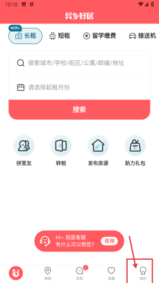 1、打开异乡好居APP,点击底部我的选项,进入个人中心页面。
