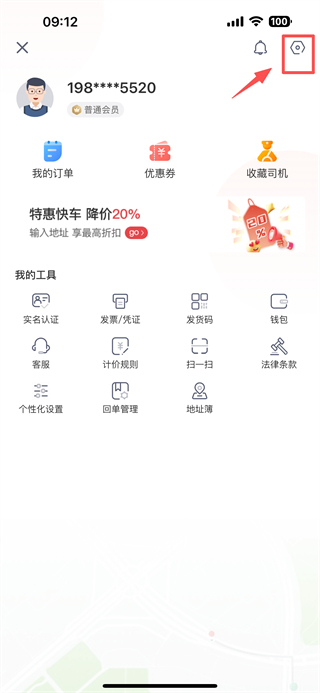 2、在个人中心,点击右上角设置图标,进入设置界面。