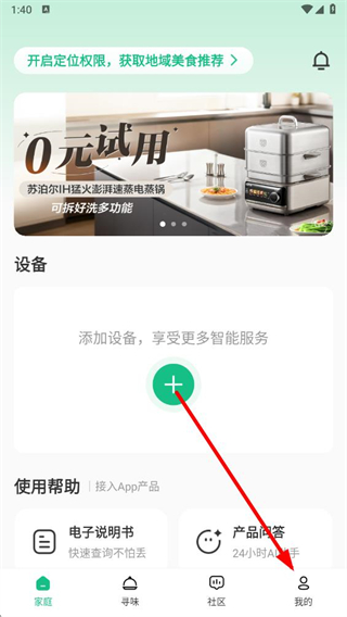 1、打开苏泊尔APP,点击右下角我的进入个人页面。