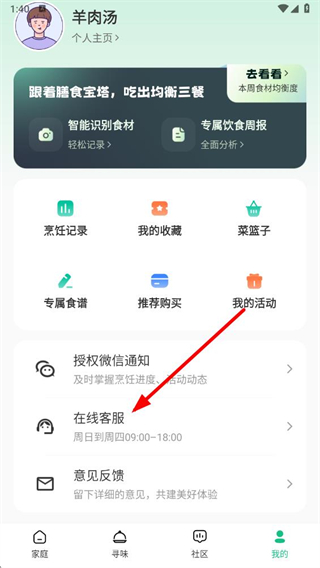 2、在个人页面下方,找到并点击在线客服选项。
