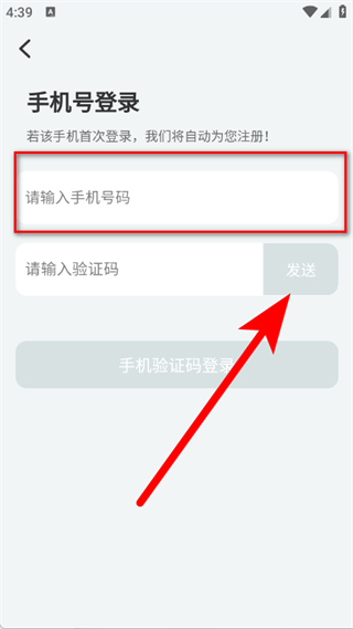 3、在手机号登录页面,输入手机号码后,点击发送获取验证码。