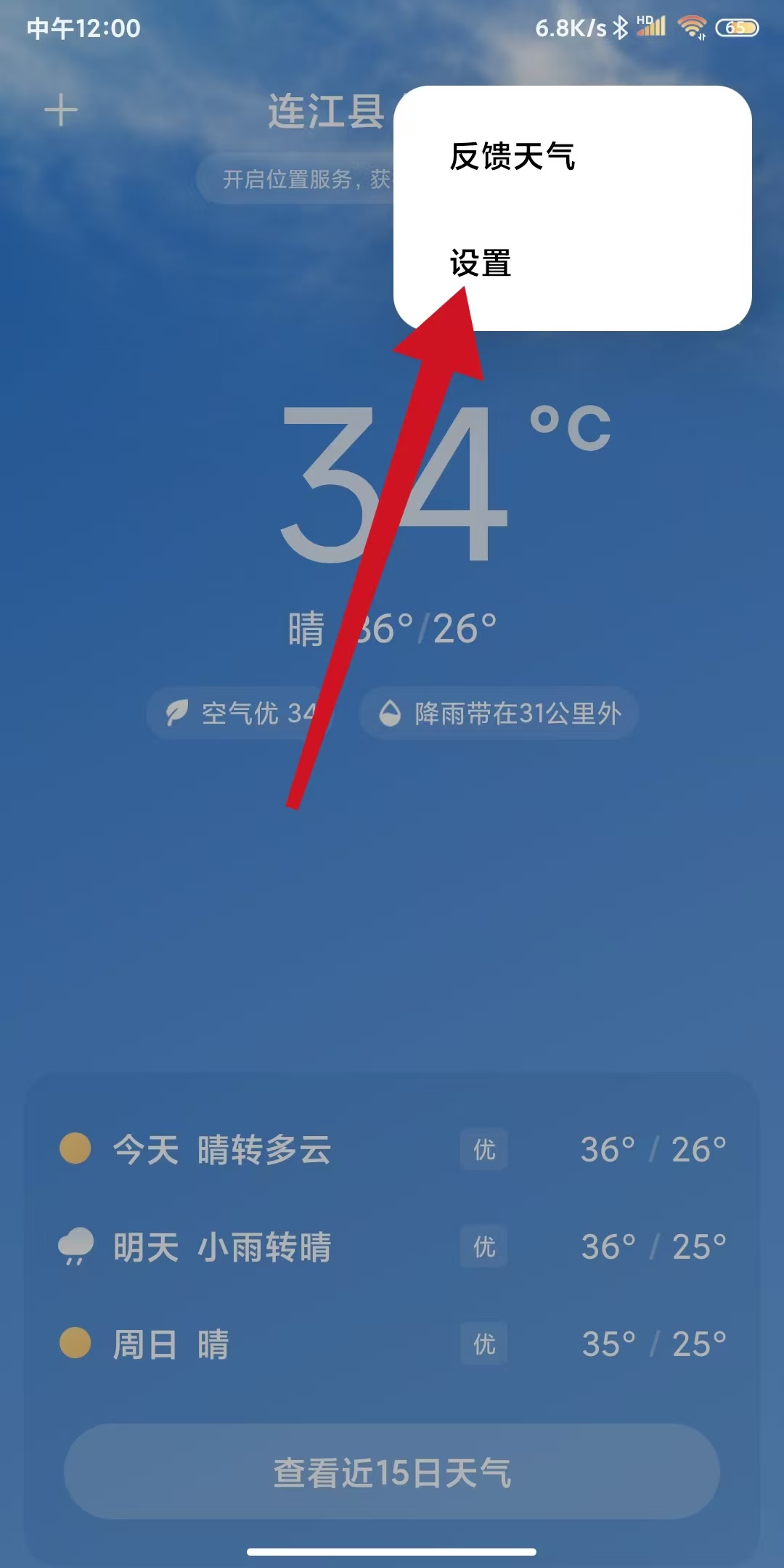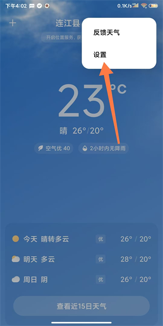 1、打开小米天气app,点击右上角三点图标进入设置页面。