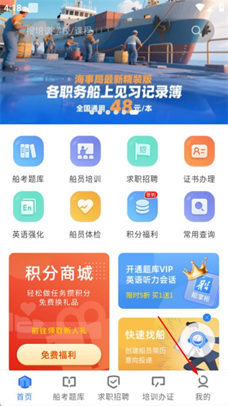 1、在船掌柜首页,点击右下角我的选项,进入个人页面。
