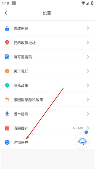 3、在设置页面,点击注销账户选项,进入注销账号确认页面。