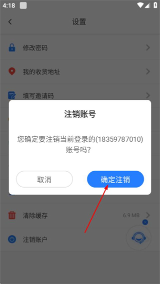 4、在注销账号确认页面,点击确定注销按钮,可完成账号注销操作。