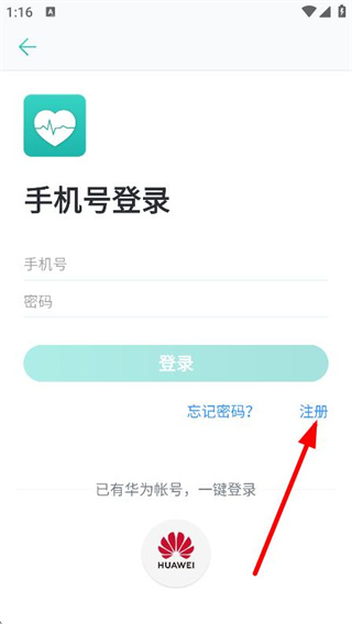 3、在手机号登录页面,点击注册,进入手机号注册页面。