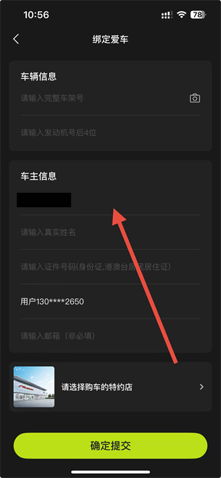 3、在页面中依次填写车辆信息和车主信息,点击确定提交按钮,即可完成车辆绑定操作。
